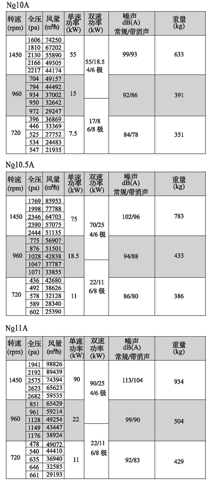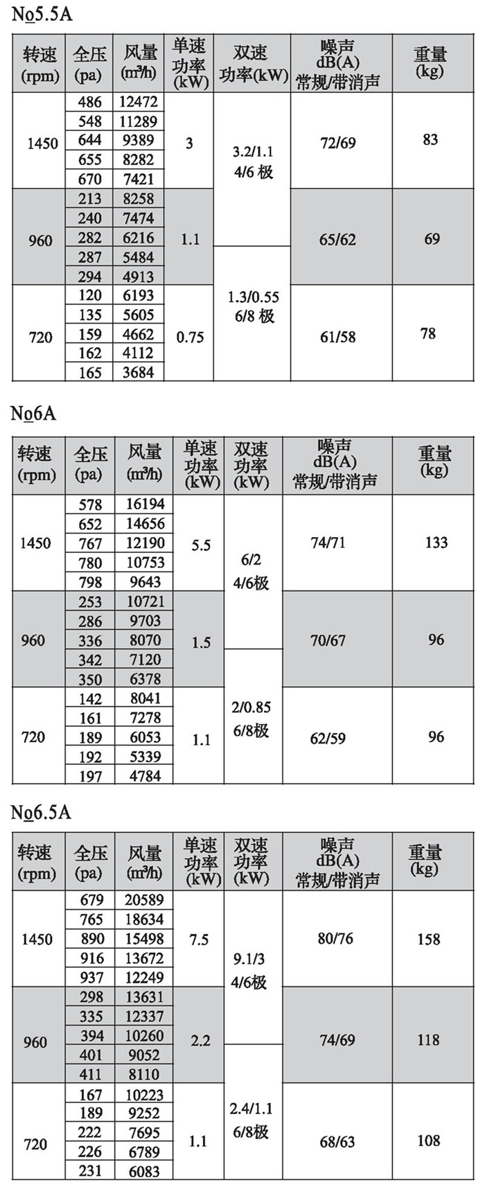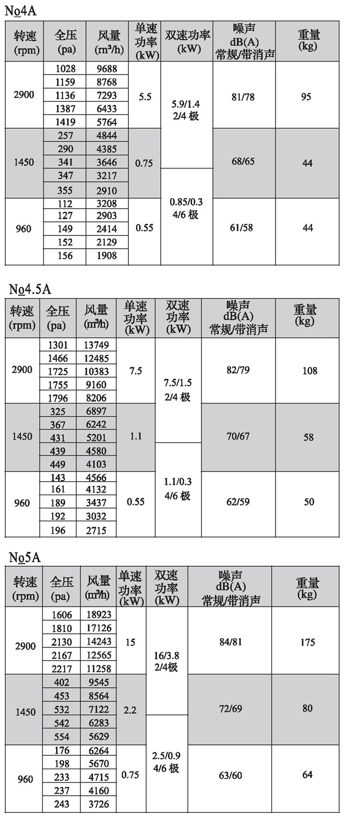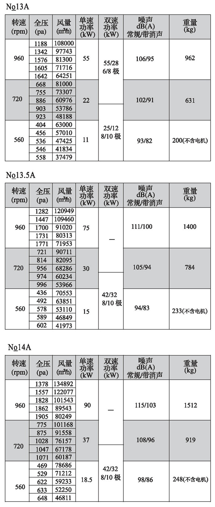 注:雙速風(fēng)機(jī)重量參考同號中高速風(fēng)機(jī)的重量。
