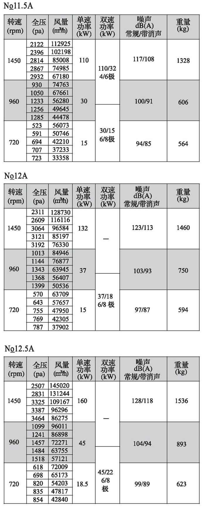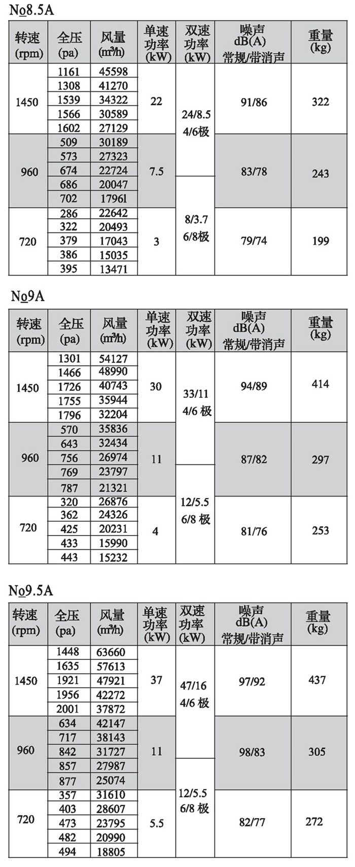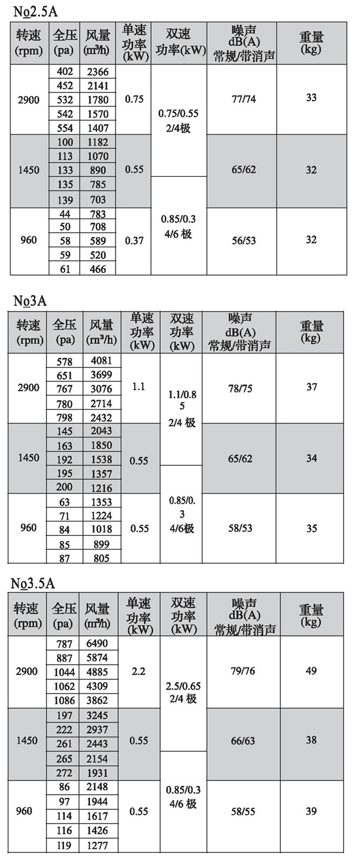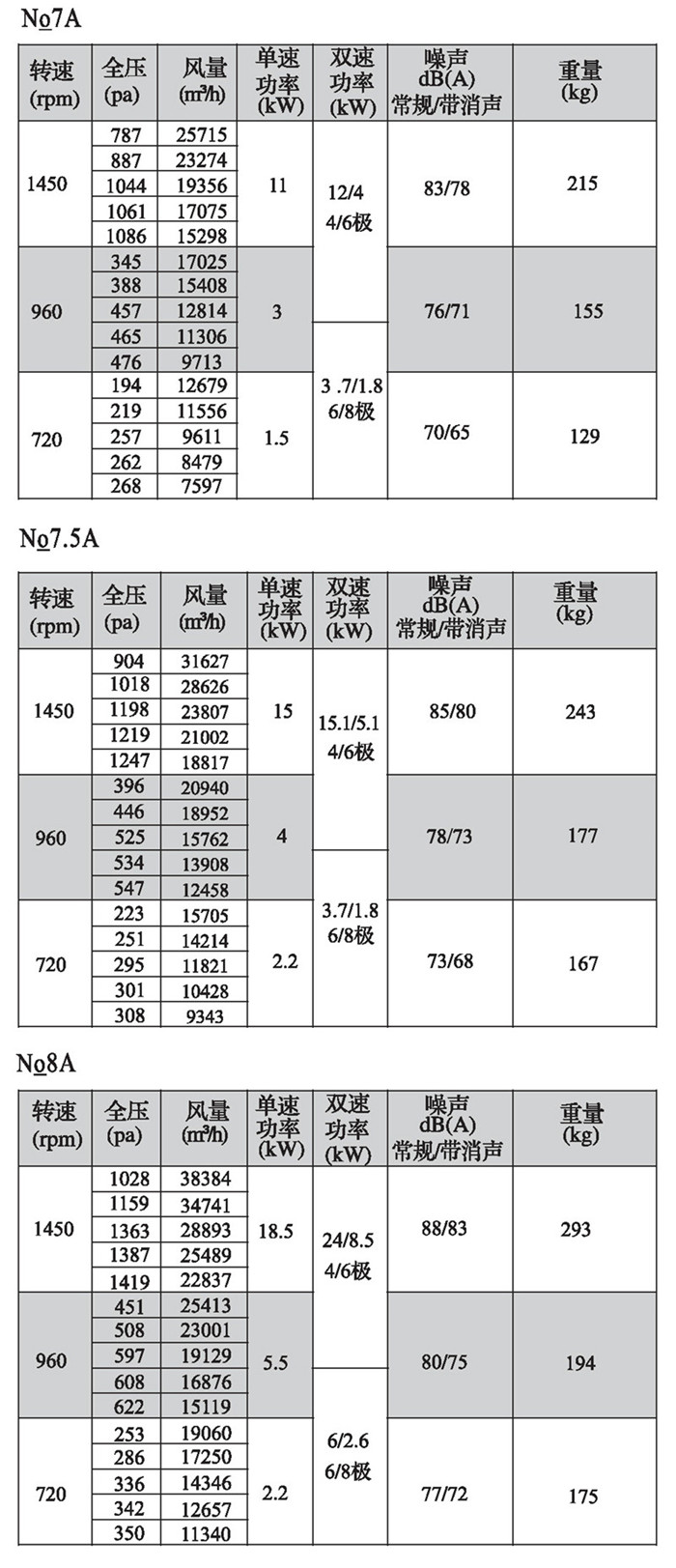 注:雙速風(fēng)機(jī)重量參考同號中高速風(fēng)機(jī)的重量。