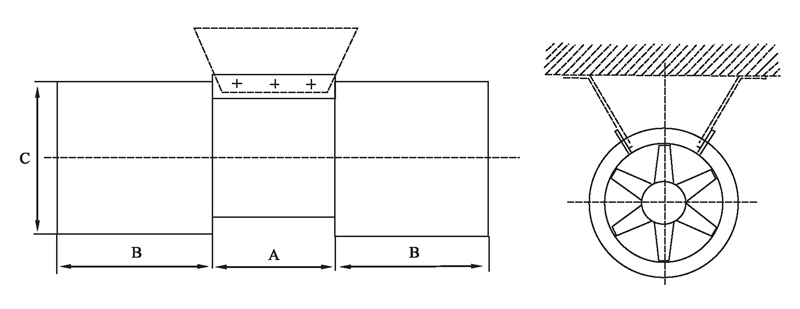 射流風機主要用于公路及鐵路隧道的縱向通風系統中,風機一般懸掛在隧道頂部或兩側,不占用交通而積,不需另外修建風道。土建造價低,是一種很經濟的通風方式。
