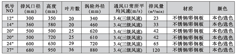 ⑥適用于工廠、倉庫、大廈天臺、別墅、天井、花房、禽畜養殖、礦山坑道及一切房頂的通氣、換氣、散氣場所。